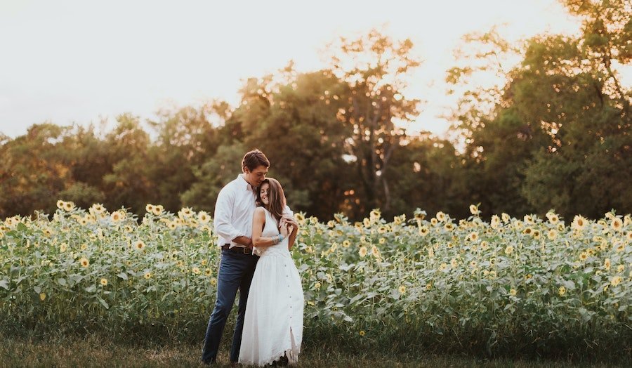 Everyone knows you can't go wrong with a field of flowers, and if you're the kind of couple that likes to say, "you are my sunshine," a field of sunflowers sounds like the perfect fit. (Especially if you grab some golden hour shots.)