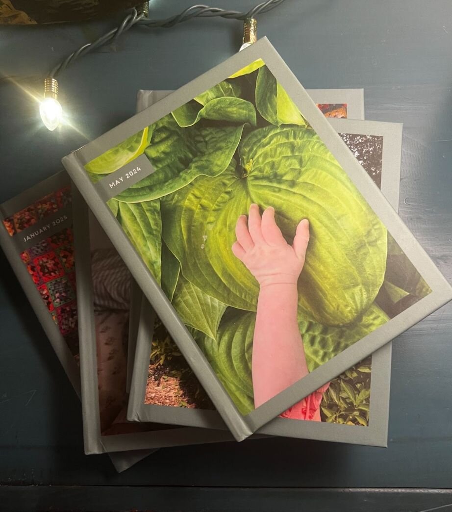 I looked at my bookshelf, where I keep this fat stack of photo books, one from each month of my son's first year.