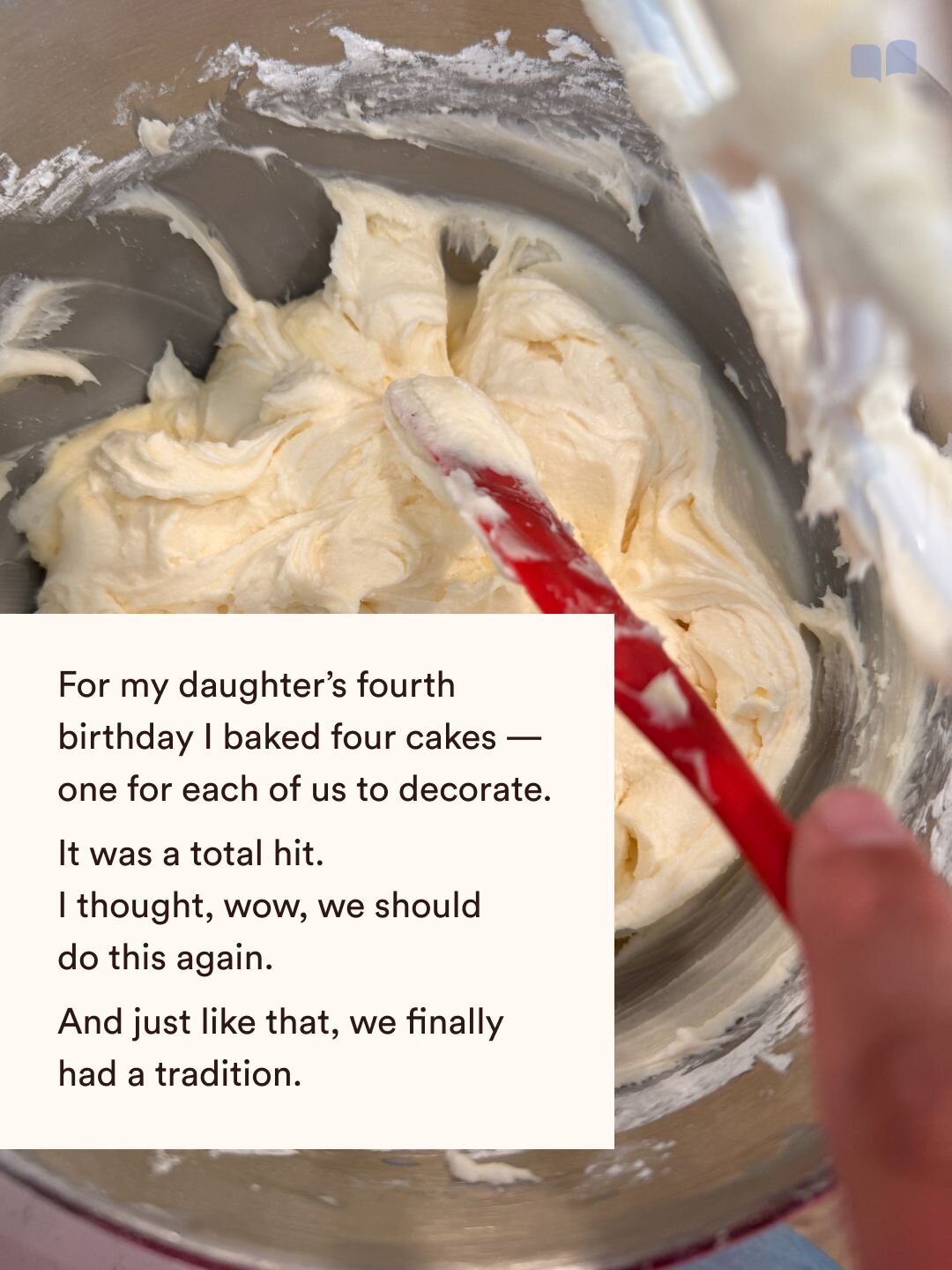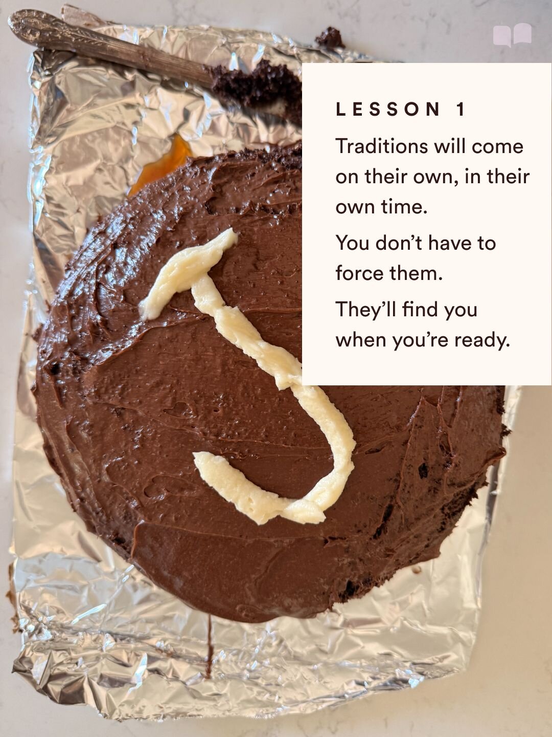 I went into my daughter's fourth birthday still without any formal traditions. I wanted everyone to feel a part of something, so I baked four cakes, one for each of us to decorate. It was a total hit, and I thought, wow, we should do this again. And just like that, we finally had a tradition.